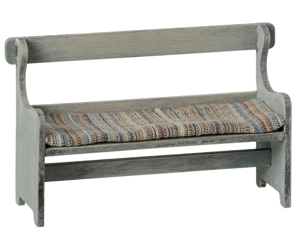 A wooden bench made to fit the mouse family perfectly. It has a beautiful hand painted vintage look - variations may occur - and a soft cushion on top of the bench for a comfortable seat.