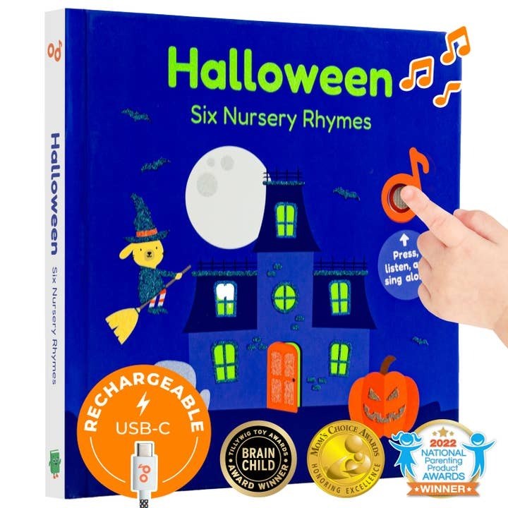 Add even more magic to the spooky season with this glow-in-the-dark sound book. Featuring six Halloween-inspired songs set to familiar melodies, it’s sure to get your little ghosts and goblins grooving! Songs included: Pumpkin, Trick or Treat, The Little Ghost, Witches, Let’s Dress Up and Black Cat.