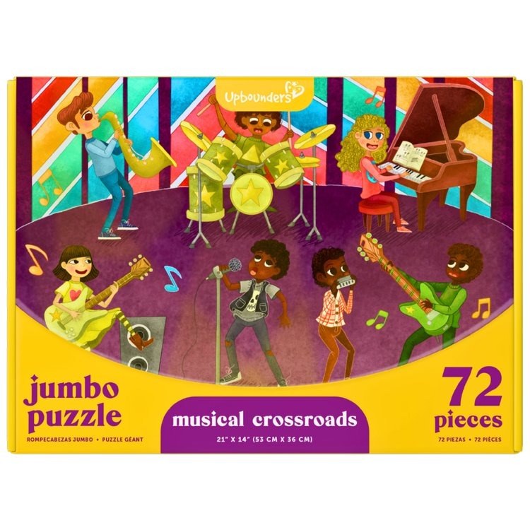 Pique a young child’s interest in all things rocking and tune their tastes to music and culture with Upbounders® Musical Crossroads 72 Piece Puzzle. Featuring a too-cool kids' band on a colorful stage, this puzzle is a conversation starter sure to spark the imaginations of inquisitive children.